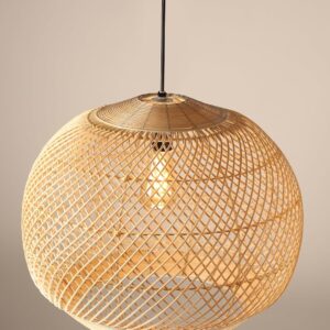 Bamboo Hanging Light | Boho Cane Wicker Ceiling Pendant Lamp for Living Room, Balcony & Indoor Outdoor Decor – Krisha