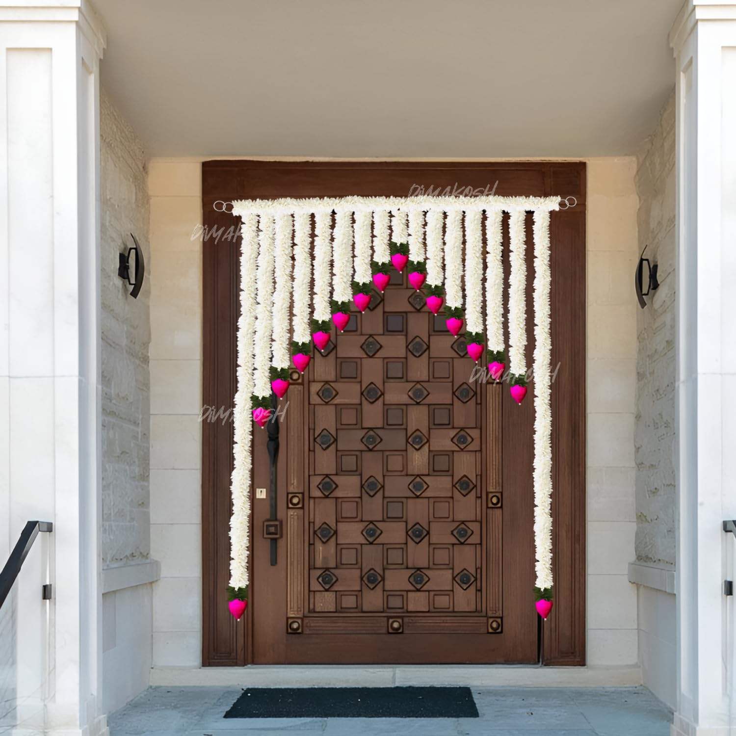 37 Inch White & Green Gajra Toran with Lotus Buds – Door Hanging for Home & Temple Entrance