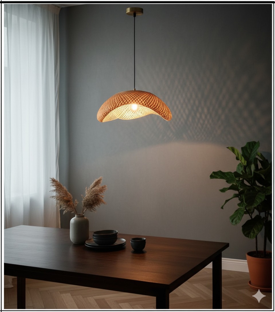 Transform your space with the AKWAY Bamboo Rattan Hanging Light – Krisha. Handcrafted from natural cane and wicker, this boho pendant lamp brings earthy charm and modern elegance to living rooms, balconies, and dining areas. Adjustable cord, durable design, and versatile style (bulb not included).