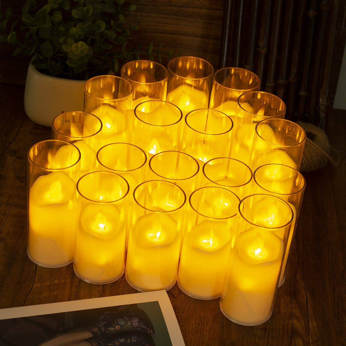| Product Name | LED Plastic Cup Tube Candle | Material | Plastic, Glass | Shape | Pillar |