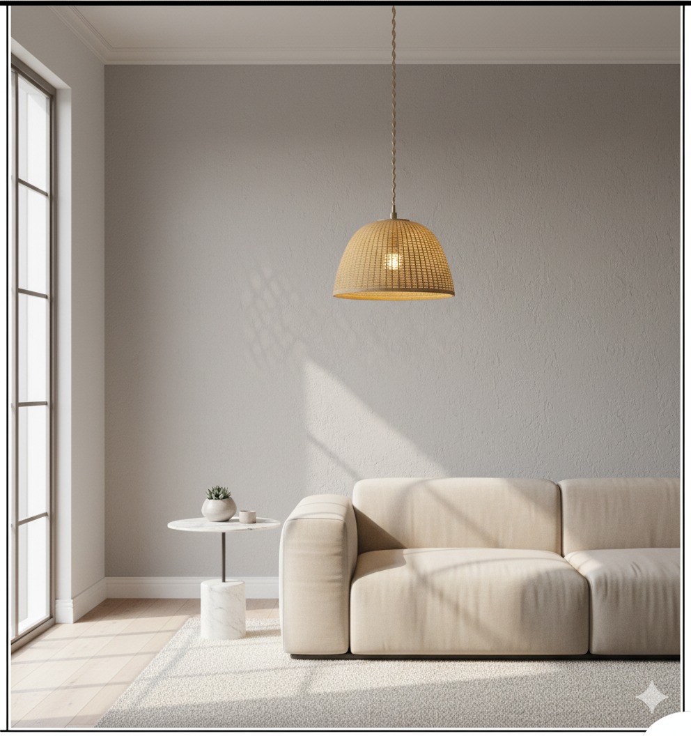 Handmade Woven Rattan Pendant Light | Natural Hanging Lamp for Living Room, Dining & Bedroom