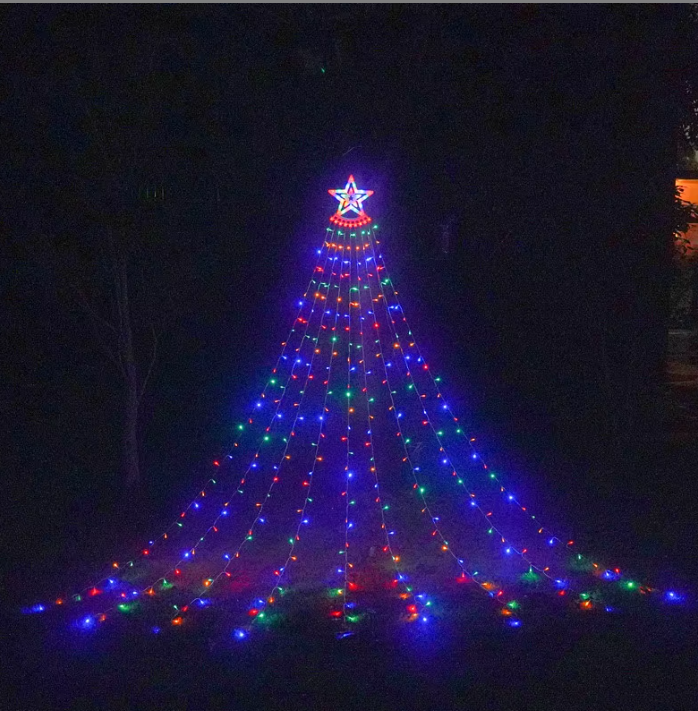 Bring festive charm to your home with the LED Solar Waterfall Five-Pointed Star Lamp. Measuring 1.5M with a warm white 3500K glow, this decorative hanging light is perfect for Christmas trees, patios, gardens, and holiday events. Featuring IP65 waterproof protection, remote control function, and durable solar-powered LEDs, it ensures eco-friendly and long-lasting illumination with 50,000 hours lifespan. Ideal for both indoor and outdoor decoration, making your celebrations magical.