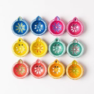 Celebrate the festival of lights with handcrafted clay diyas, painted in vibrant colors and polished for a premium finish. Perfect for Diwali pooja, home décor, mandirs, gifting, and festive celebrations, these eco-friendly diyas come in packs of 12 with premade cotton wicks for ease of use. Hand-painted by rural women artisans, they make the ideal…
